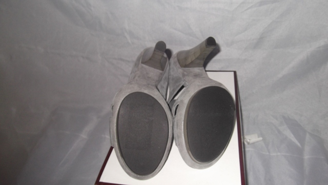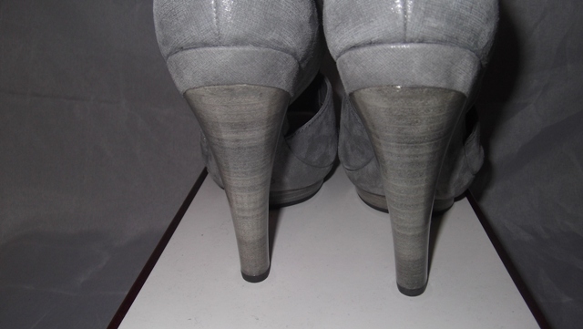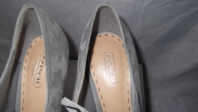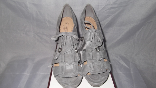 Intensely fashionable Coach gladiator heel with great detailing and premium Coach leather. Soft shimmer leather in the slate color. Features 4.75 inch heel with .5 inch platform.