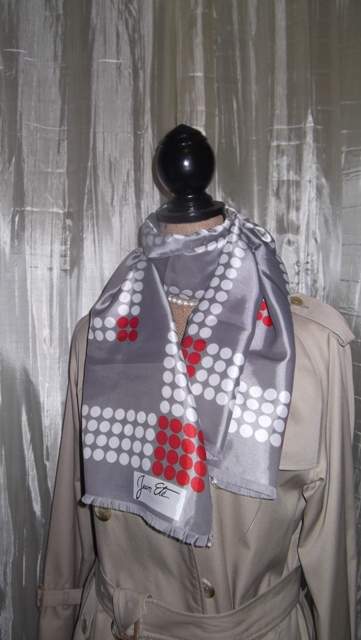 Beautiful Jean Ete Scarf adorned in silk and red with white polka dots. Very nice to wear with a jacket or hanging on a purse. 100% pure silk